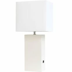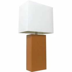 Flash Sale π€© Elegant Designs Modern Leather 21 In. Table Lamp With White Fabric Shade β