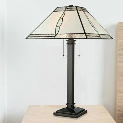 Outlet ๐ Simple Designs 13.375 In. Wood Mounted Table Lamp With Glass Cylinder Shade ๐