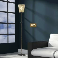 Beautiful Modern Chrome Torchiere(71″H) in Brass/Gold finish Crystal Shade