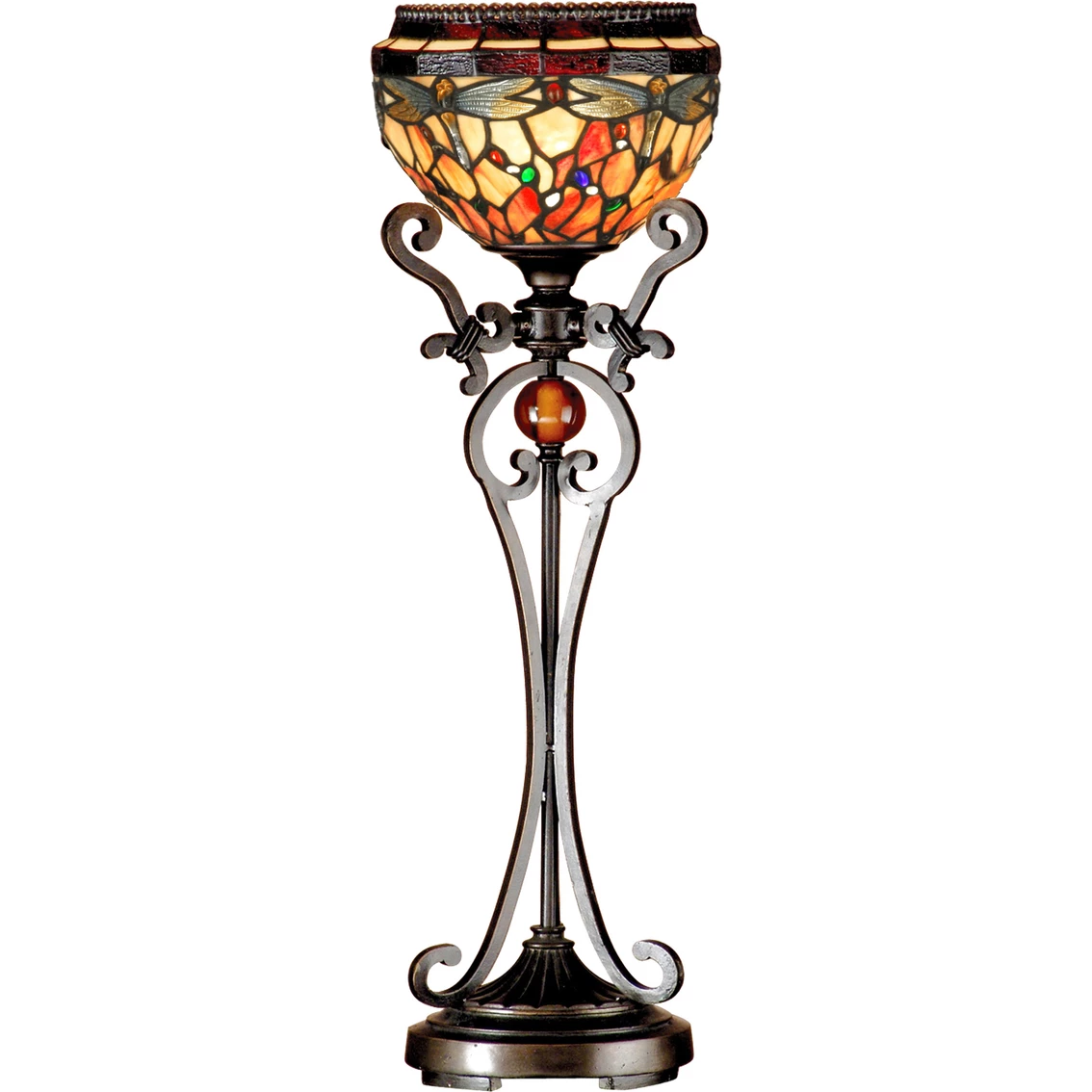 The Briar Dragonfly series create a marriage of Renaissance era inspired wrought iron and Tiffany’s iconic dragonfly for a match made in Heaven. The dome shaped shades all feature a background of sunny amber art glass, each with band of iridescent dragonflies running around the shadeβs circumference.
