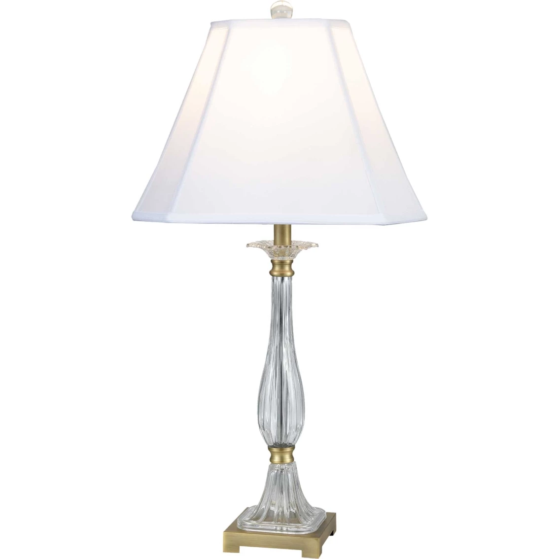 Built with good taste the Spring Hill 24% Lead Hand Cut Crystal Table Lamp from Dale Tiffany will transcend style into any decor in your home or office. Sleek and stylish, the delightfully slender crystal center column is surrounded by high quality metal. The flared metal square-footed pedestal is the perfect accompaniment to base, then an ultra-crisp fabric shade completes the sophisticated look. When illuminated the Spring Hill crystal table lamp dazzles and sparkles, a true gem in modern lighting decor. Model: SGT17166.