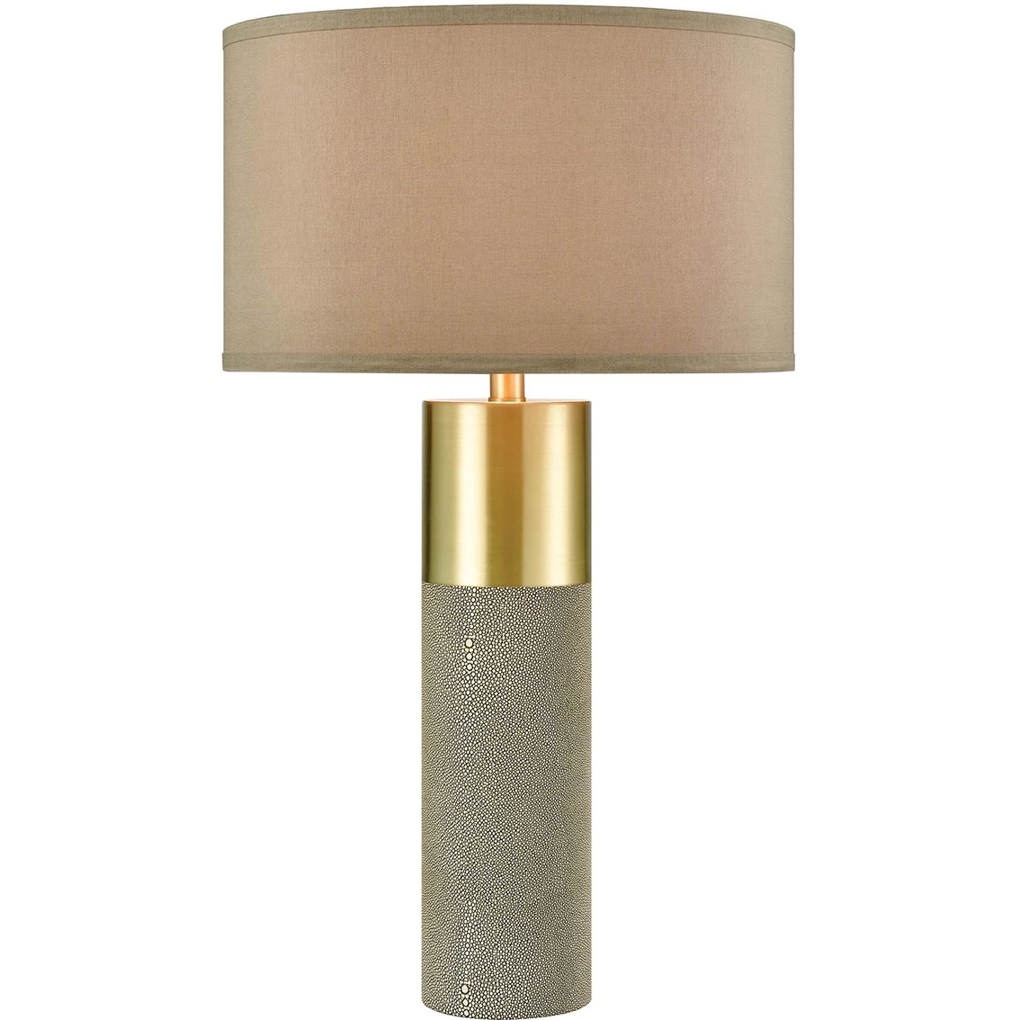 Transcending the boundaries of lighting innovation and style with the artful designs of Dimond Lighting. Perfect mix of form and function, the Tulle Table Lamp features base with brown faux shagreen and metal in honey brass finish. Includes mushroom faux silk round hardback shade. Uses A21 3-way bulb. Model: D4502.