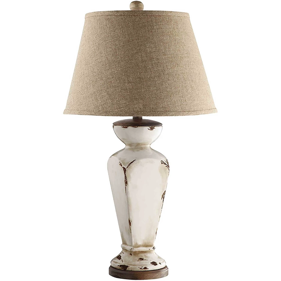 Transcending the boundaries of lighting innovation and style with the artful designs of Dimond Lighting. Charming Cadence Table Lamp features ceramic base with distressed antique cream finish. Includes linen round hardback shade. Uses A21 3-way bulb. Model: 90032.