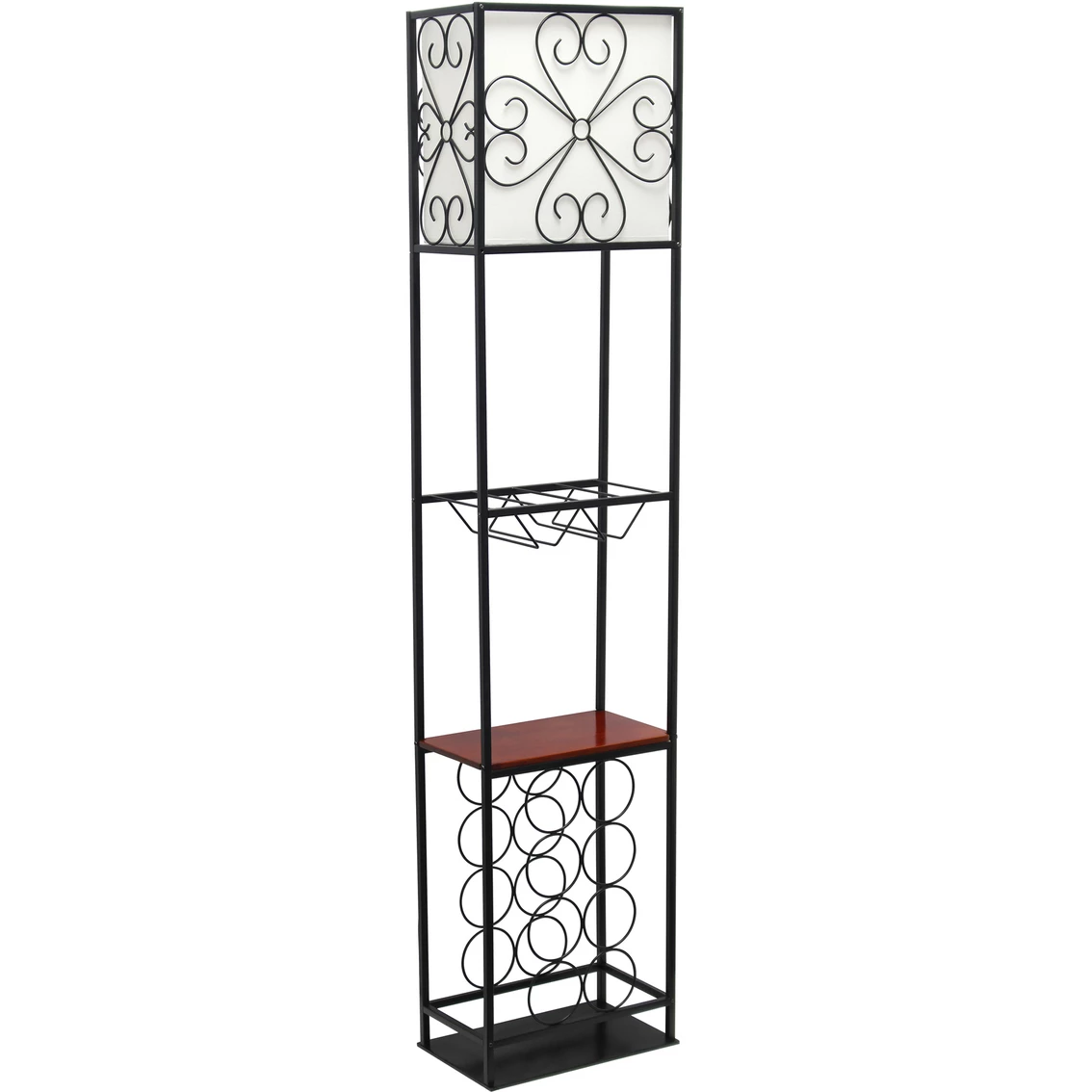 Reserve some of your best wine while illuminating your living space in style with this floor shelf lamp and wine rack from Elegant Designs. This gorgeous piece adds versatility as the shelves can be used to display photographs and other memorabilia, while accommodating space for your wine glasses and bottles. The linen lamp shade casts a soft, warming light throughout your living space. Lamp amp adds sophistication and style to any home’s decor.