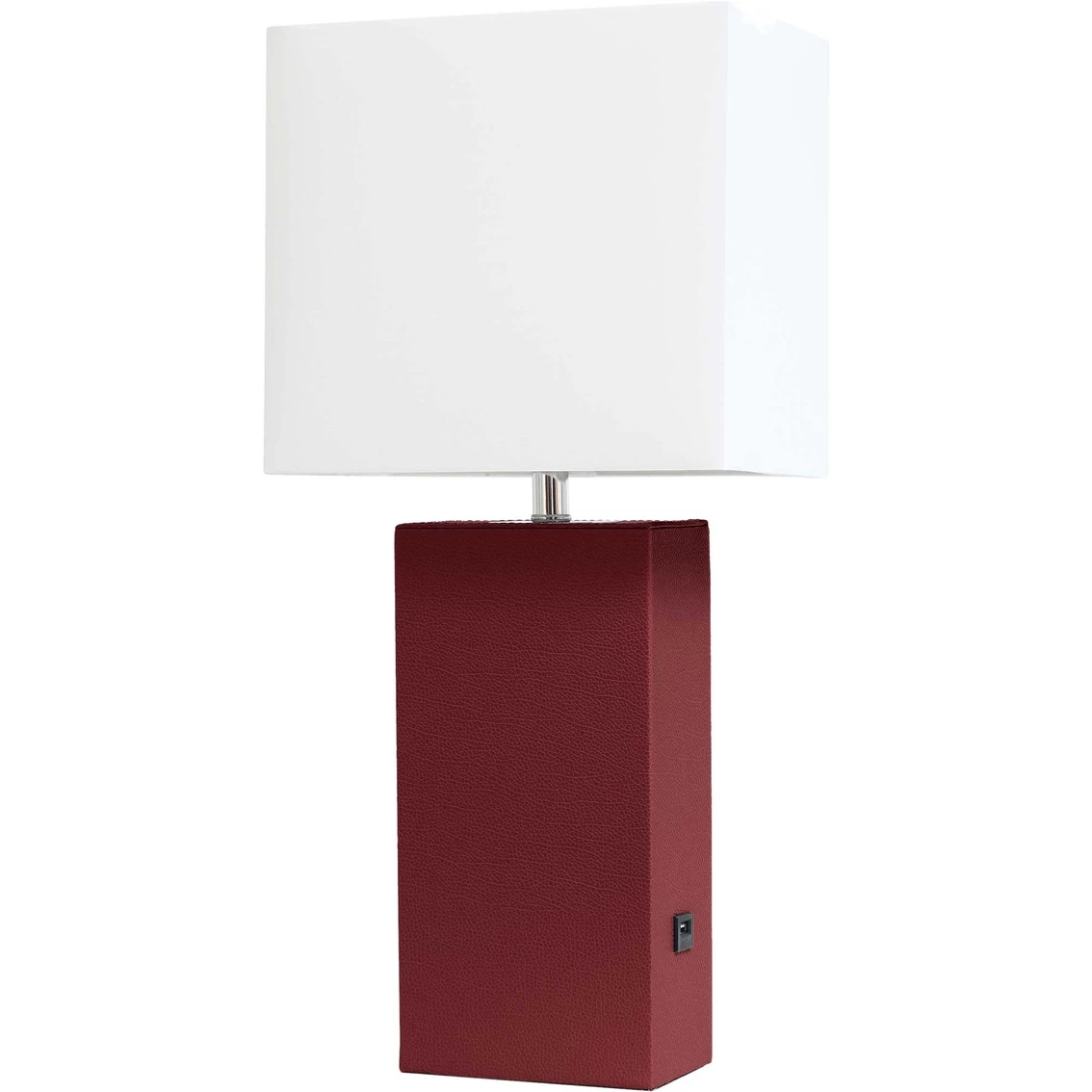 This simple yet modernized table lamp by Elegant Designs showcasing a leather body and white fabric shade is the perfect addition to your lighting needs. With a USB port on the side of the base, you are able to conveniently plug and/or charge your device. Elegant Designs products are designed to enhance your room with elegance and sophistication.