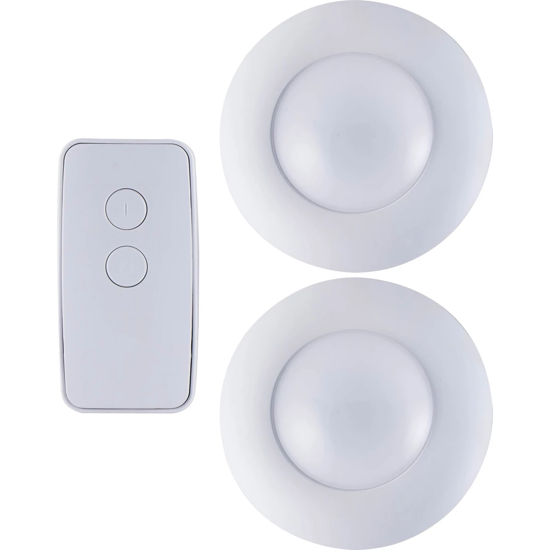 | Includes | 2 LED Puck LightsRemote Control with A23 BatteryDouble Sided Tape |