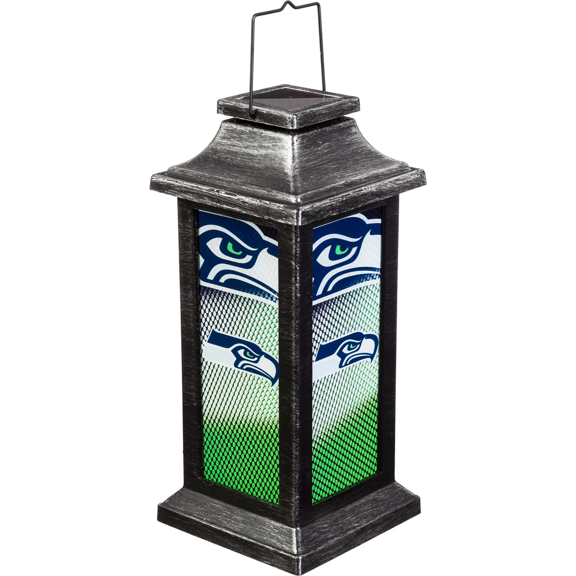 Support your favorite NFL Football team day or night with this Solar Garden Lantern from Evergreen. Hangable plastic lantern has a distressed-metallic finish and lights up the team logo. Solar-powered — battery recharges in sunlight. Includes on/off switch on bottom and one AA, 300maH battery. All teams may not be available. Model: 2SP3827T.