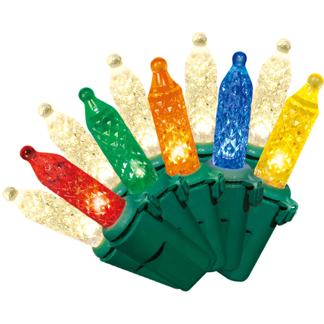 Everstar offers this 100 ct. Synchronized Color-Changing LED M5 Light set with 8 Functions. The strand has a 12 ft. length, with diamond-cut M5 reflectors. It is string to string and designed for indoor and outdoor use. Model: ES78-763.