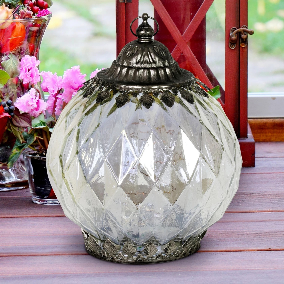 Add charm and warmth to any indoor or outdoor space with this elegant 8 in. opal glass lantern from Exhart. With the automatic timer, a beautiful glow will illuminate from within the lantern at your desired hour, enhancing the diamond pattern within the glass. Makes a beautiful and stylish addition to your home or garden. Model: 19433-RS.