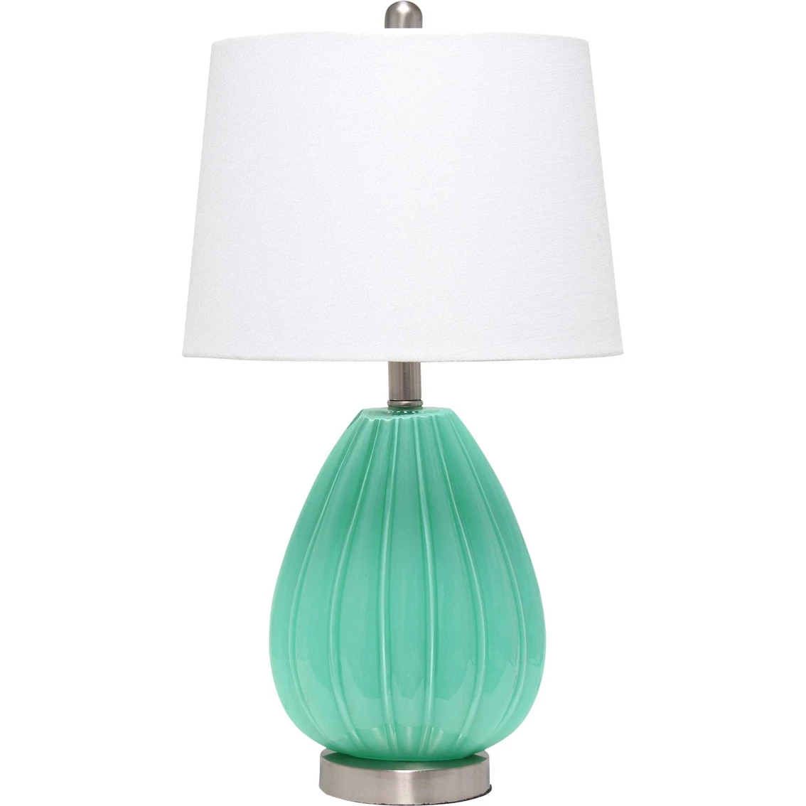 Illuminate your space with this chic and charming Lalia Home Pleated Table Lamp. The teal glass base is curvy and accentuated with a pleated design topped off with a white fabric shade. Perfect for your living room, bedroom, office, or anywhere you need to add a tasteful update. Model: LHT5006TL.