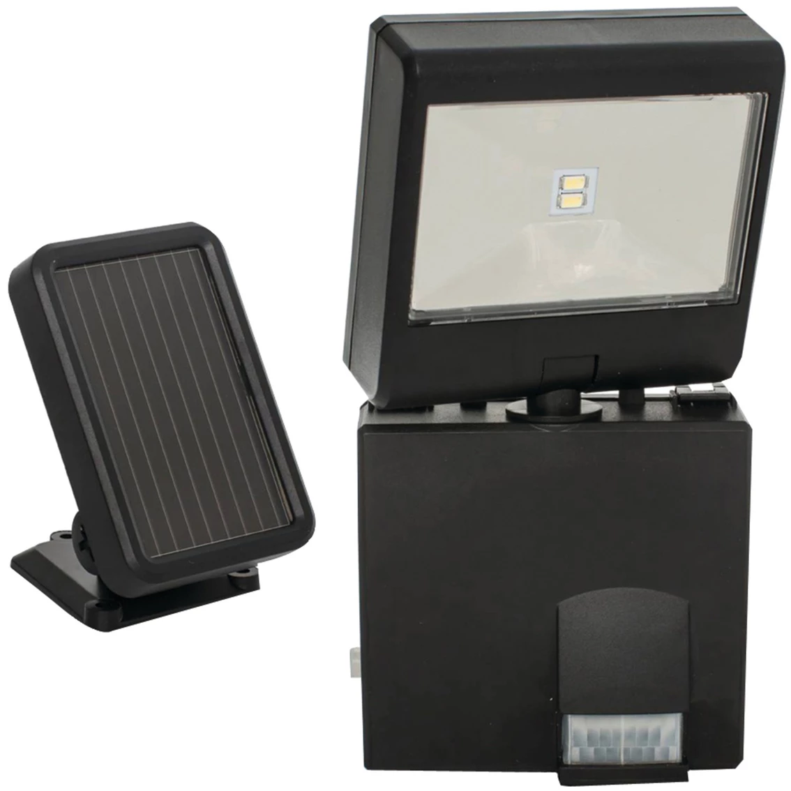 - Solar-powered LED security spotlight