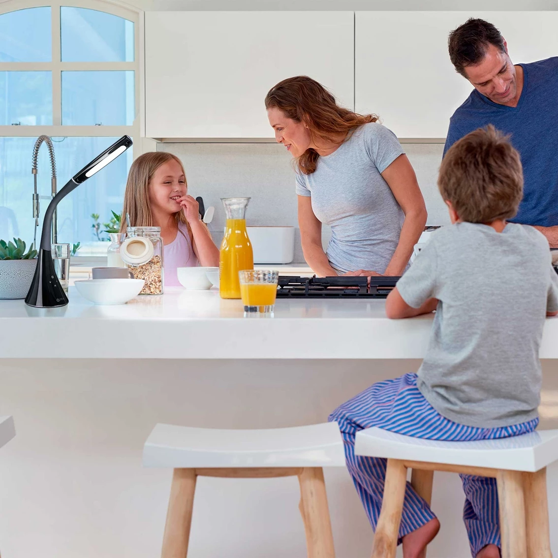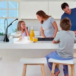 The OttLite Swerve LED Desk Lamp is a great touch lamp for a variety of uses. Exclusive ClearSun LED technology optimizes illumination while helping reduce eyestrain by 51%. Easily adjust the four brightness settings with the touch-sensitive control, and the three color modes with touch-activated controls enable easy adjustments to meet your needs. With a flexible neck that extends 20 in., the lamp easily adjusts the light angle over all your projects. Versatile illumination makes it perfect for everyday tasks. Model: CSN34KCW.