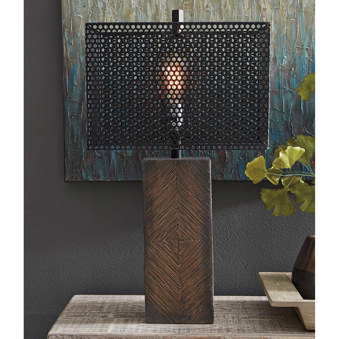 Like an elegantly modern suit, this cool Briek table lamp from Signature Design by Ashley provides fashionable structure to your home decor. Made of composite paper with a metal shade, this lamp is at once urban, architectural and bold. Create a new mood in an instant when you turn on this source of inspiration. Model: L235654.