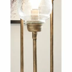 With the Emmie floor lamp from Signature Design by Ashley, stand-up style is a no brainer with its goldtone metal and glass shades. Varying height bulbs cascade light for maximum impact beside an accent chair or mirror. No more fumbling around in the dark — the easy foot switch simplifies adding extra light to the room whenever you need it. Model: L207191.