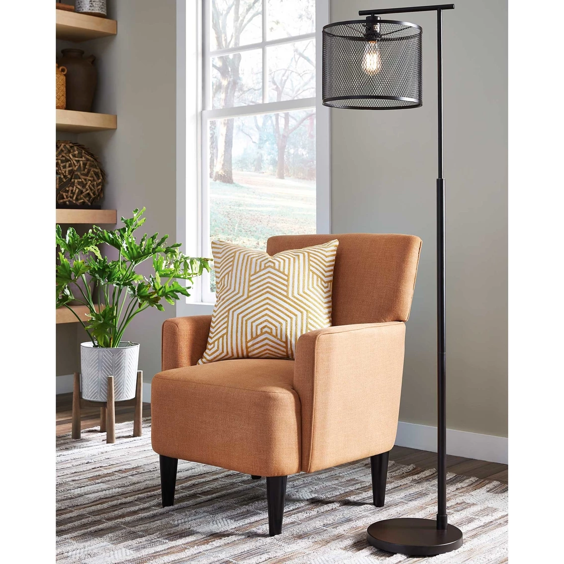 For urban sophistication, add the Signature Design by Ashley Nolden 61.75 in. Floor Lamp to your space. A bronze-tone finish and metal shade help this structured lamp shed light on good style. Model: L206011.