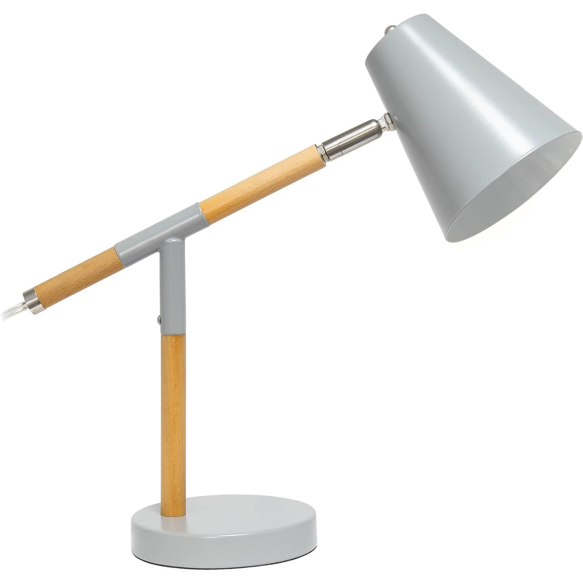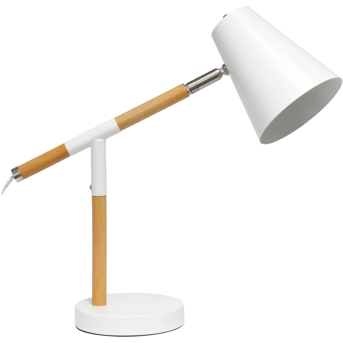 Simple yet modern this desk lamp from Simple Designs will add a stylish touch to your home, dorm or office! The conical shade can be easily adjusted 180 degrees that allows easy focusing of light where needed the most. Made of mixed materials, this lamp is on trend!