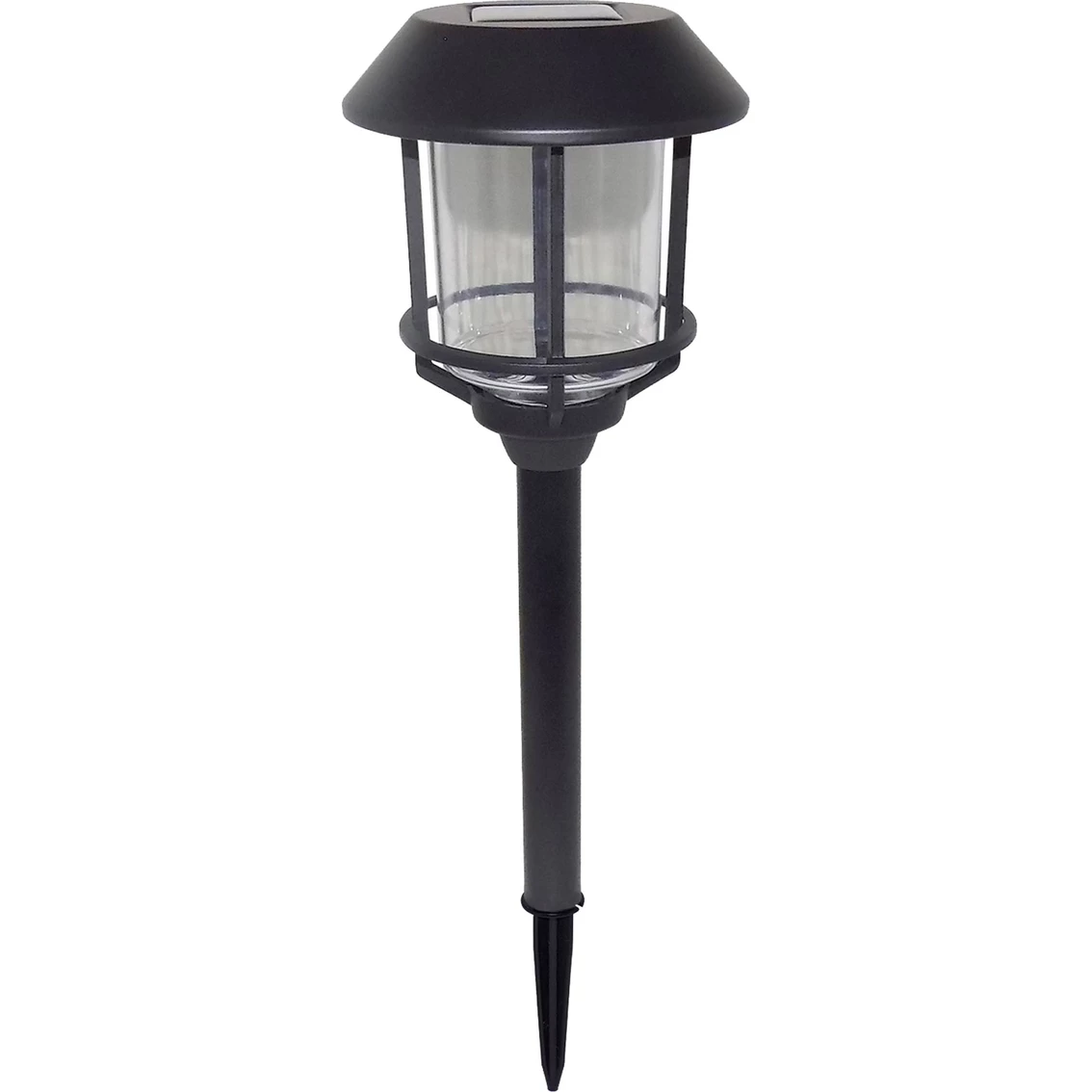 Solar LED Pathway Light from SmartYard is constructed from a stainless steel material with a black finish. The LED shines with 8 lumens of light. Run time minimum 8 hours on full charge. Solar light powered by Energizer. Model: 0318024.