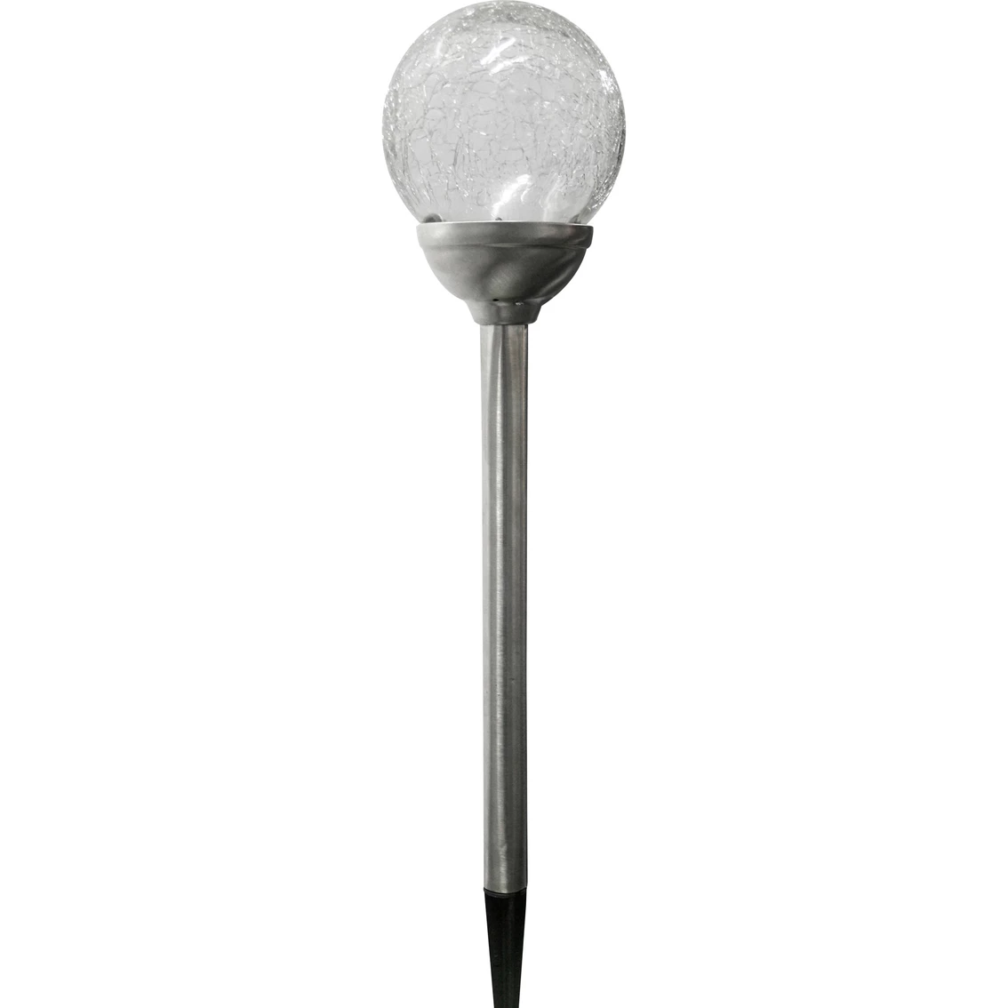 Solar LED Crackled Glass Pathway Light from SmartYard features a stainless steel finish and a large white crackle glass lens. The LED shines with 2.4 lumens of warm white light. Run time is minimum of 8 hours per full charge. Solar light powered by Energizer. Model: 82910-W.