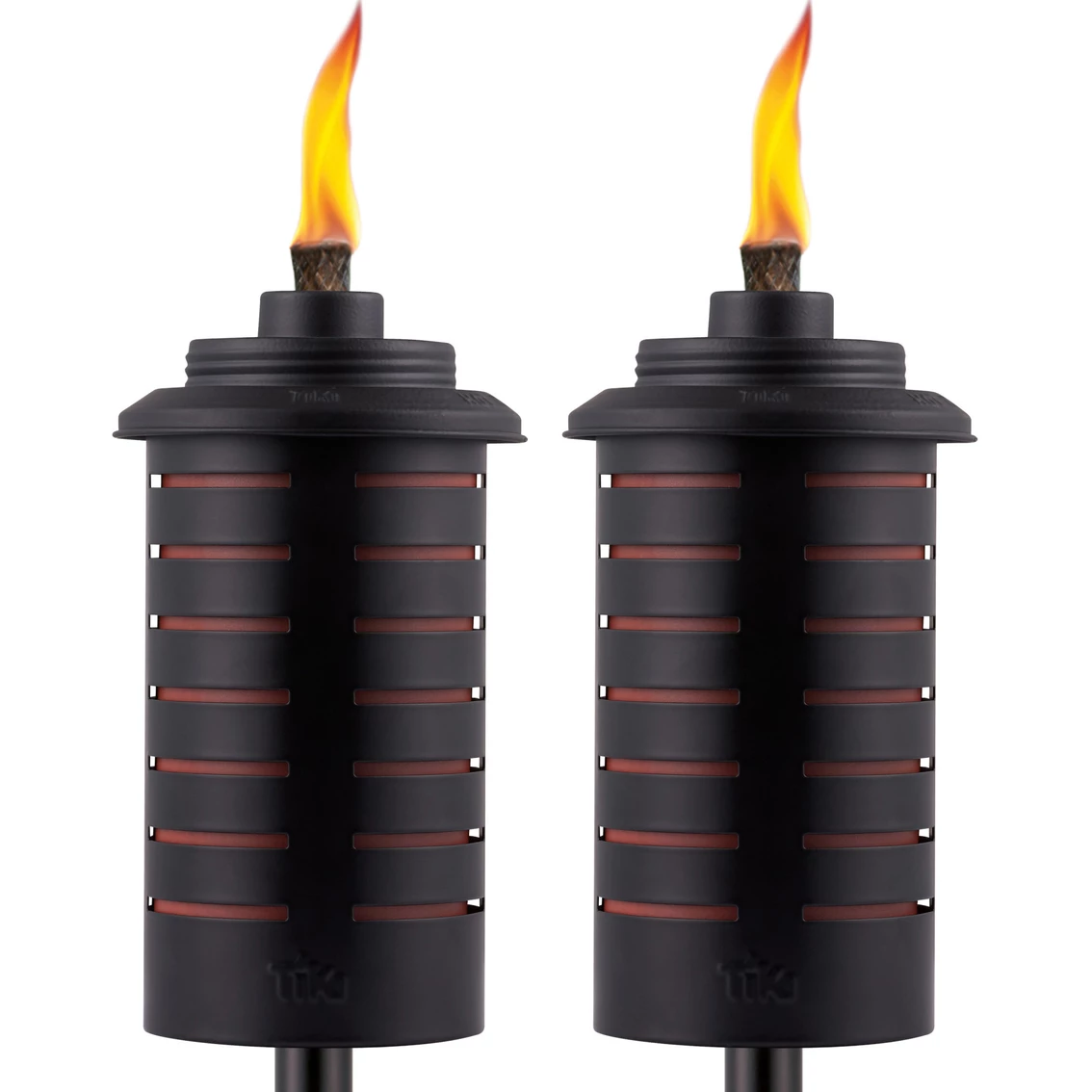 Easily enjoy entertaining or relaxing in your backyard with TIKI Easy Install Torches. The easy install lever provides a simple, one-step installation. The clever torch design converts from a 65-in. full-size torch to a 50-in. mid-size garden torch, giving you the flexibility to add the pleasing glow of flickering light to any space in your backyard. Remove the metal pole completely and it becomes an 7-in. centerpiece for your outdoor dining table or end table. The easy-to-use fuel canister features a wide mouth for fewer spills and less mess when refilling. These TIKI Brand Horizon Metal Torches with Easy Install come complete with a flameguard, 4-piece pole with easy install lever, long-lasting wick and a metal snuffer to safely extinguish the flame. For proven mosquito repellency, use with TIKI Brand BiteFighter Torch Fuel and enjoy up to 5 hours of burn time with each 12-ounce fill. TIKI Brand BiteFighter Torch Fuel sold separately. Torches sold as a 2-pack. Model: 1120038.